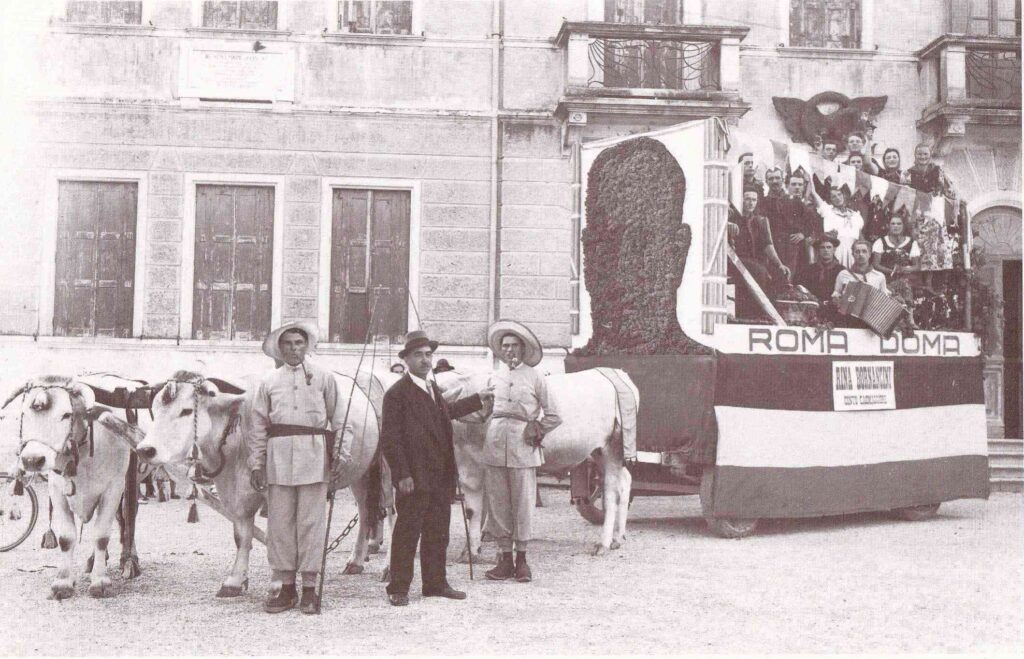 Non credo che tale premio abbia dato un contributo significativo all’economia dei partecipanti. Però se guardiamo le foto possiamo dedurre le ragioni che favorirono la popolarità che questo carro ebbe in seguito in paese. Nell’allestimento del carro infatti c’era tutta la retorica fascista “imperiale” di quel periodo improntata ad osannare Mussolini (considerato perfino dal parroco di allora, don Giovanni Fratta, “uomo unto dal signore”) e ad esaltare la conquista dell’Etiopia con la frase “Roma doma”. Un tale messaggio politico ebbe sicuramente molta più presa nei giurati fascisti portogruaresi del contenuto estetico del carro e a Cinto, l’amministrazione fascista dell’epoca, approfittò di tale premio irrisorio per far credere di essere di fronte ad uno degli eventi storici più importanti della comunità cintese, con l’evidente scopo di intensificare la propaganda fascista.