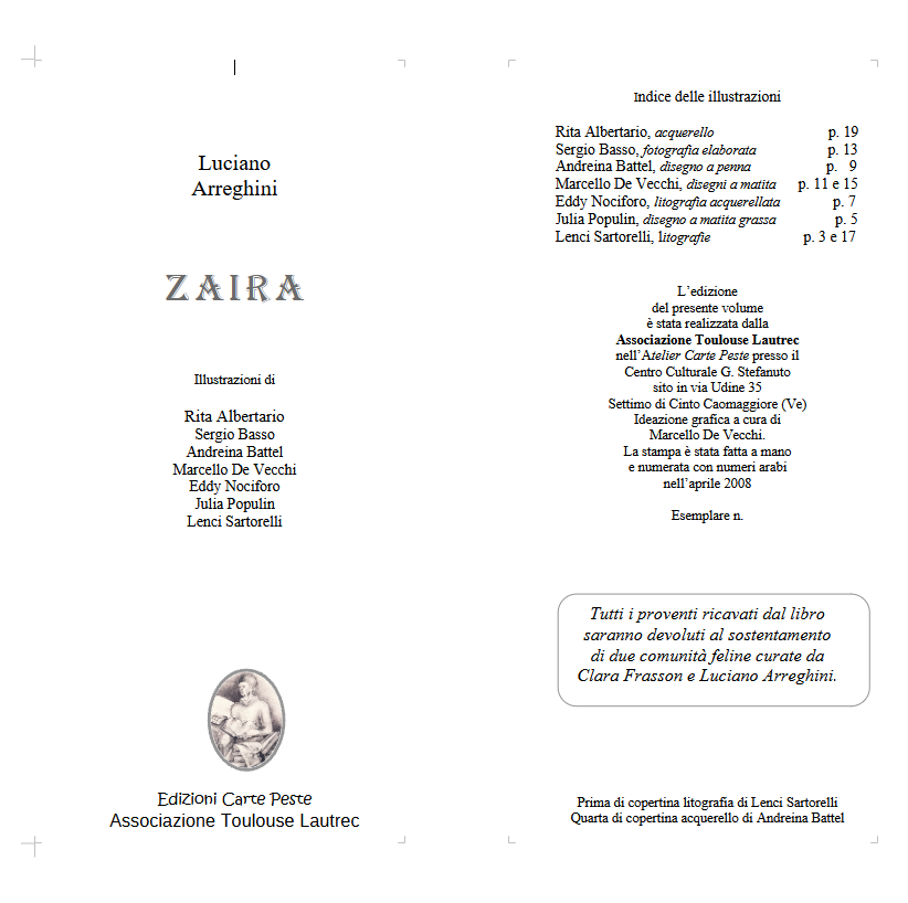 Luciano Arreghini ci ha lasciato giovedì 4 dicembre. Giovedì 11 dicembre alle ore 15.00 nella Sala del Commiato del Cimitero Maggiore di Padova è stato programmato l’ultimo saluto a Luciano. In suo ricordo inseriamo i file del suo libro manufatto ZAIRA che abbiamo pubblicato nel 2008.