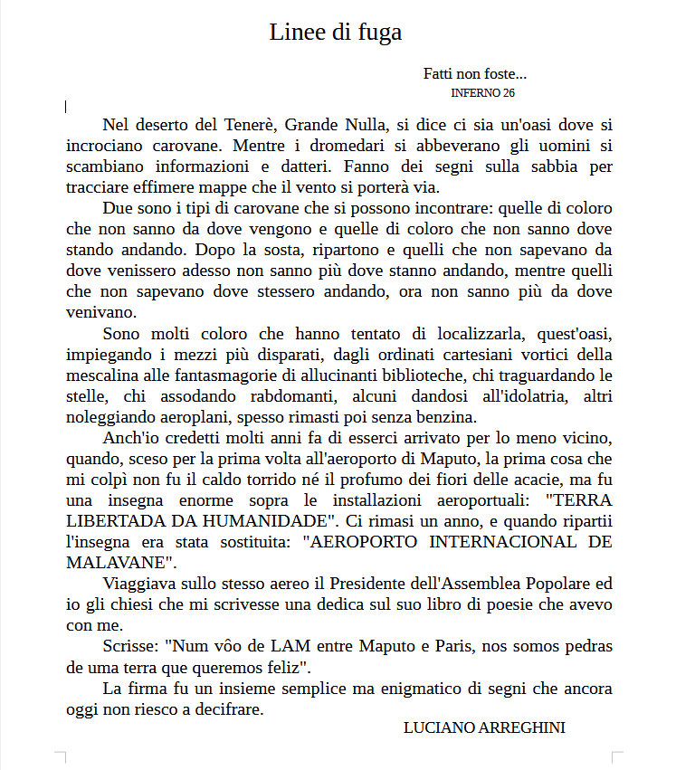 Questo terzo testo fu inserito all’interno di una cartella di tre litografie di Marcello De Vecchi dal titolo “Linee di Fuga” e pubblicata nel 1997 dalla Scuola Internazionale di Grafica di Venezia
